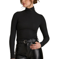 Camiseta de cuello alto de manga larga personalizada para mujer, camisa de cuello alto de algodón suave de ajuste elástico para oficina informal o uso diario